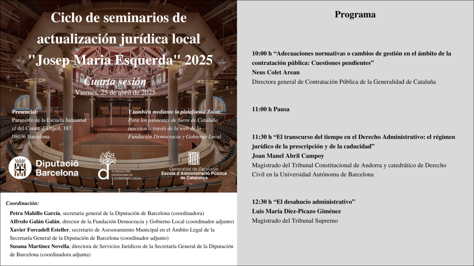 Ciclo de seminarios de actualización jurídica local Josep Maria Esquerda 2025 Cuarta sesión