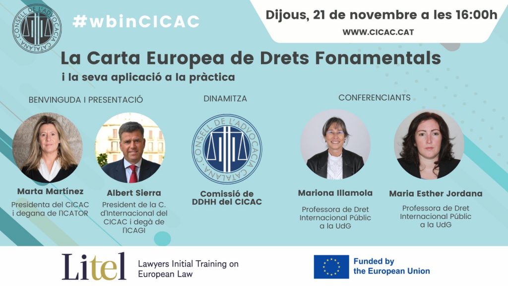 Quina relació té la CEDF amb el CEDH? En quines circumstàncies pot l’advocacia invocar la Carta en un cas en concret? Sota quines condicions, en quins àmbits?  En aquest WbinCICAC es tractaran aquests temes.